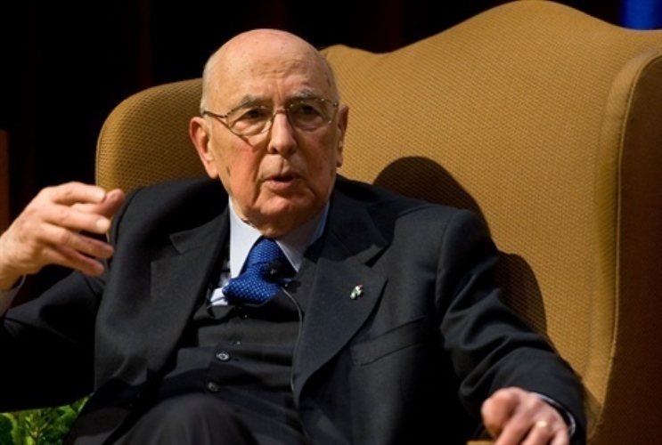 Il Presidente Giorgio Napolitano mostra la medaglia della NYU, consegnata dal Professor Richard L. Revesz