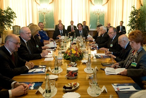 Il Presidente Giorgio Napolitano e il Presidente della Repubblica Slovacca Ivan Gašparovič, nel corso dei colloqui allargati alle delegazioni