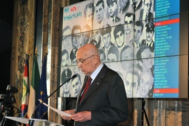 Il Presidente Giorgio Napolitano nel corso della cerimonia del Giorno della Memoria dedicato alle vittime del Terrorismo