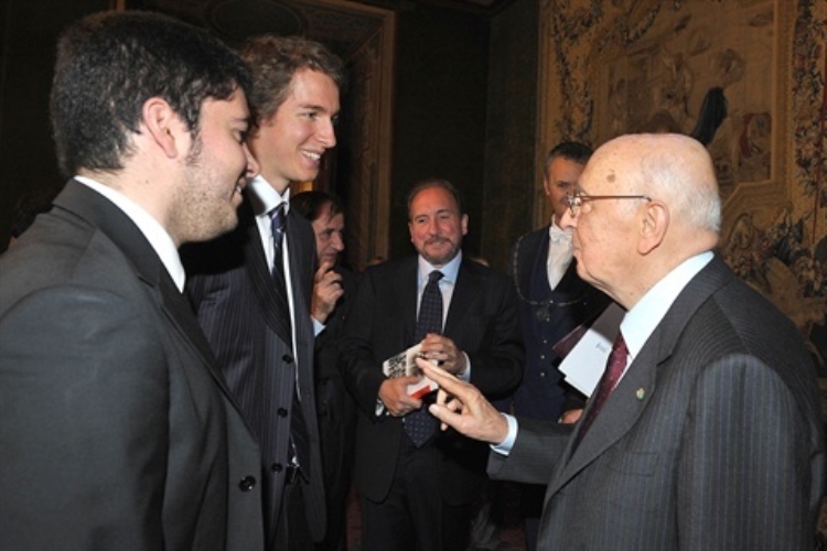 Il Presidente Giorgio Napolitano con Eugenio Occorsio il figlio Vittorio e il nipote Luca in occasione del Giorno della Memoria dedicato alle vittime del Terrorismo