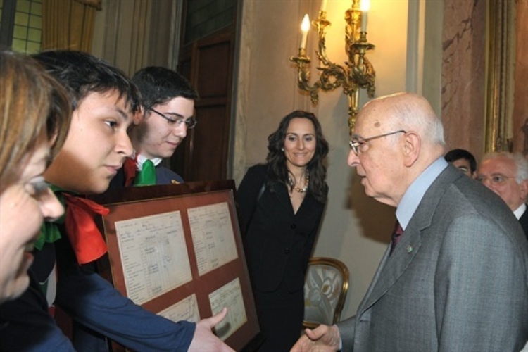 I ragazzi del Convitto Nazionale di Palermo, impegnati in iniziative per la legalità, hanno mostrato al Presidente le pagelle del Giudice Giovanni Falcone