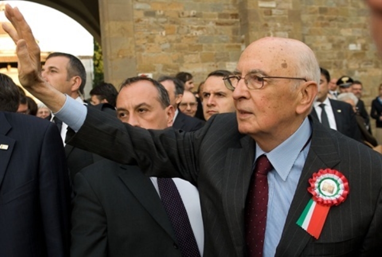 Firenze - Il Presidente della Repubblica Giorgio Napolitano lascia la Basilica di Santa Croce, al termine del convegno "Firenze, Bettino Ricasoli, l'Unità d'Italia"