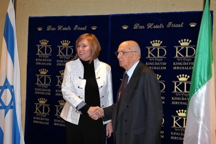 Il Presidente Giorgio Napolitano con Tzipi Livni, leader dell'opposizione