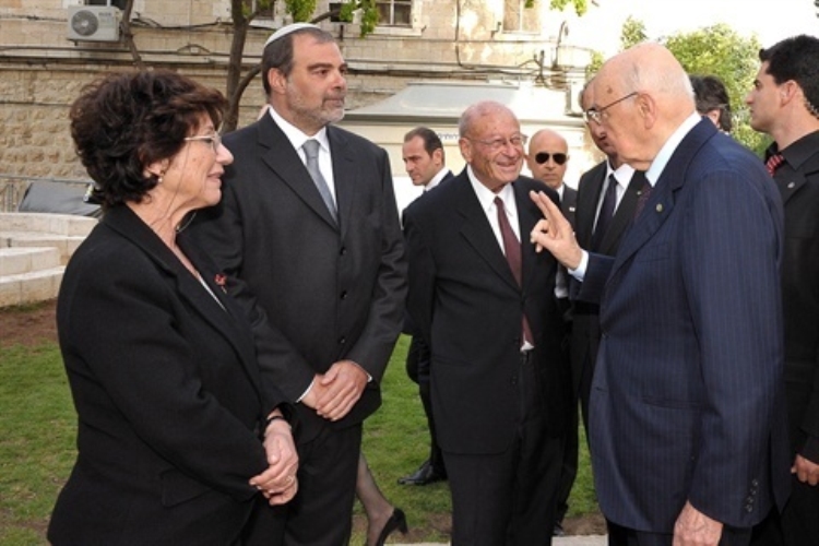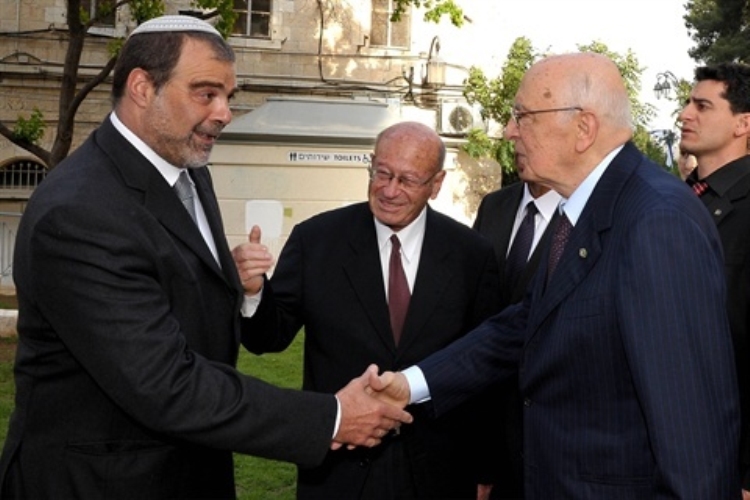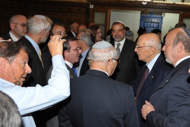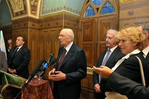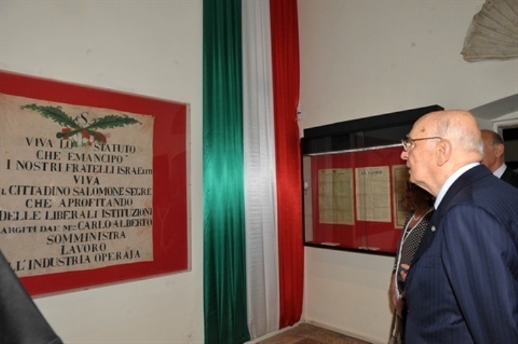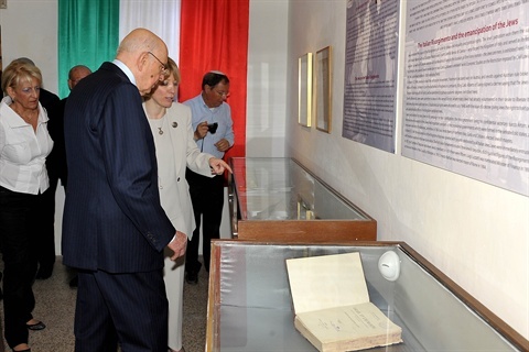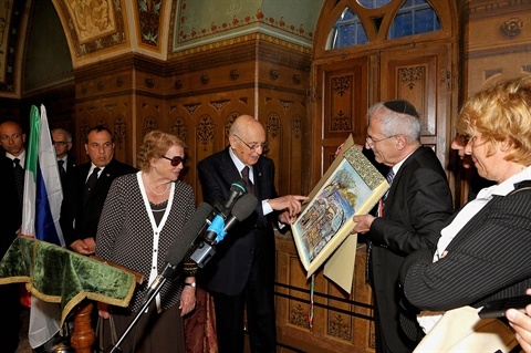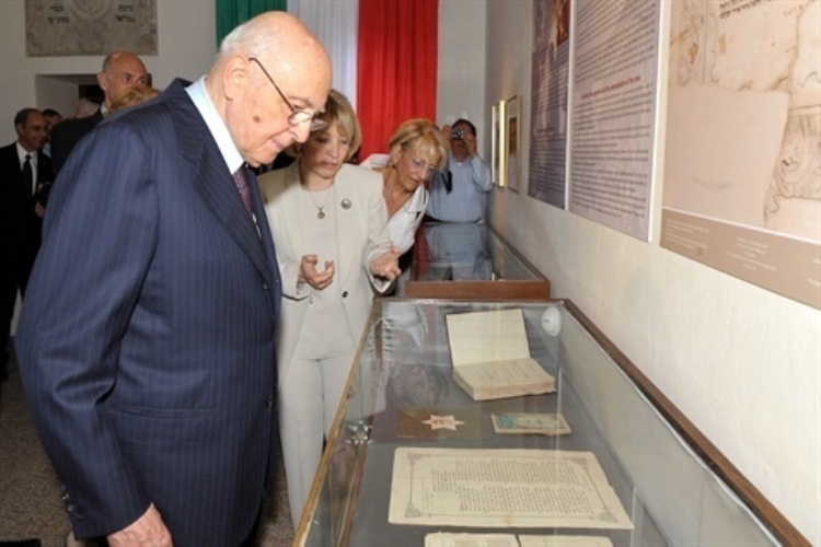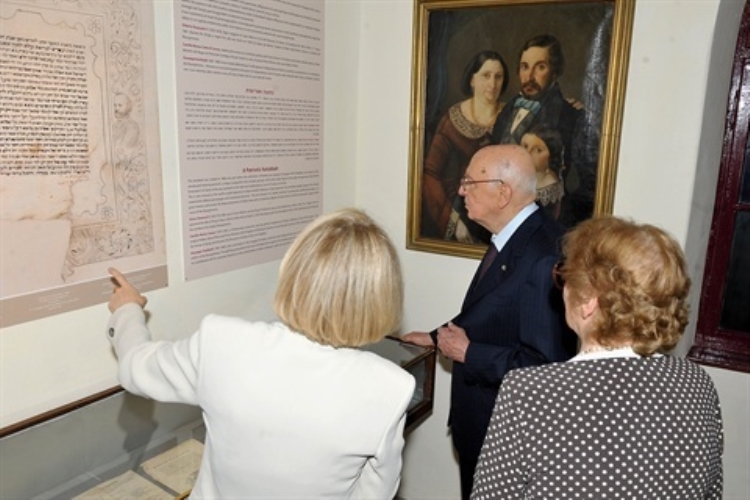 Il Presidente Giorgio Napolitano durante la visita all'esposizione permanente del Museo Umberto Nahon, al Tempio Italiano
