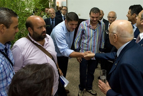 Il Presidente Giorgio Napolitano accoglie una delegazione di operai della Fincantieri di Castellammare