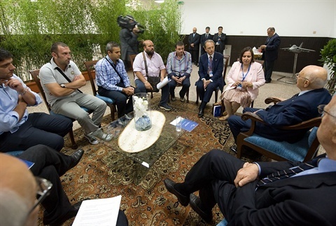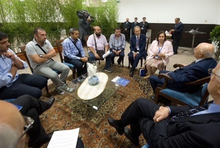 Il Presidente Giorgio Napolitano nel corso dell'incontro con una rappresentanza di operai della Fincantieri di Castellammare