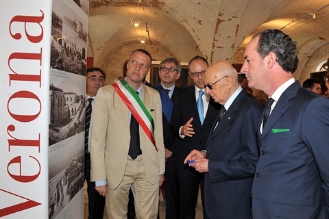 Il Presidente Giorgio Napolitano con il Sindaco di Verona Flavio Tosi e il Presidente della Giunta Regionale del Veneto Luca Zaia, in occasione della visita alla mostra "Verona dagli Asburgo al Regno d'Italia"