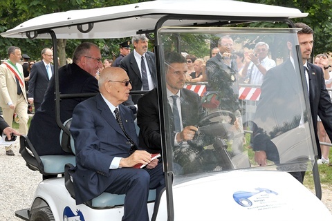Il Presidente Giorgio Napolitano durante il trasferimento per la rappresentazione dello spettacolo "L'alba delle libertà", canzoni e musiche della Costituzione