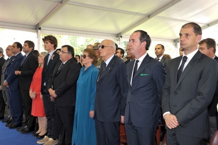 Il Presidente Giorgio Napolitano al suo arrivo per la rappresentazione dello spettacolo "L'alba delle libertà", canzoni e musiche della Costituzione, all'interno dell'ex Arsenale Austriaco
