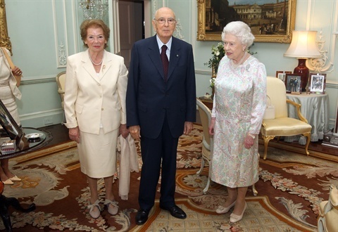 Il Presidente Giorgio Napolitano con la Signora Clio incontrano S.M. la Regina Elisabetta a Buckingham Palace