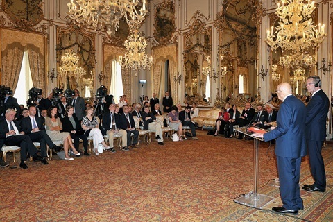 Il Presidente Giorgio Napolitano rivolge un indirizzo di saluto in occasione del concerto sulla Piazza del Campidoglio