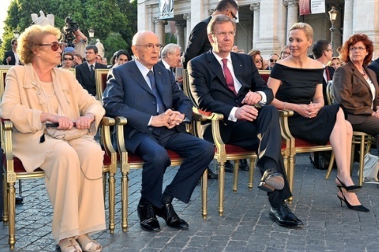 Il Presidente Giorgio Napolitano con il Presidente della Repubblica Federale di Germania Christian Wulff e consorti