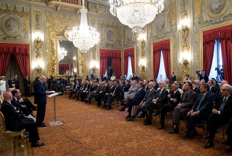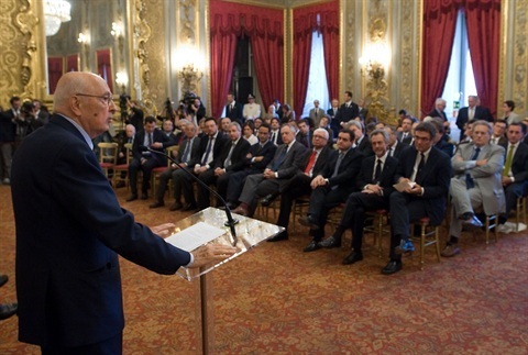Il Presidente Giorgio Napolitano al termine dell'incontro con i componenti dell'Associazione Stampa Parlamentare, per la tradizionale consegna del "Ventaglio"