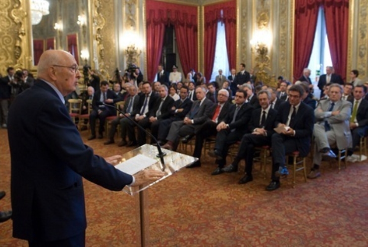 Il Presidente Giorgio Napolitano nel corso dell'incontro con una delegazione dell'Associazione Stampa Parlamentare per la consegna del "Ventaglio"