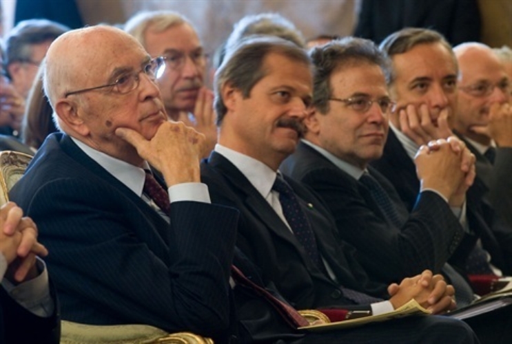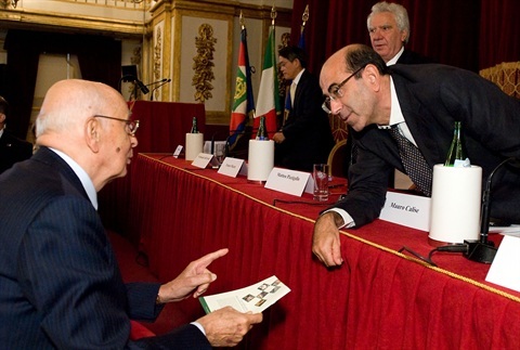 Il Presidente Giorgio Napolitano in occasione della Conferenza internazionale "La diplomazia della globalizzazione" saluta il Prof. Mauro Calise