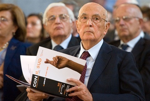 Il Presidente Giorgio Napolitano durante l'incontro sul tema "Cinque anni con il Sud" organizzato dalla Fondazione Con il Sud