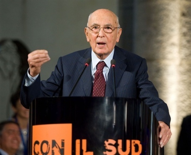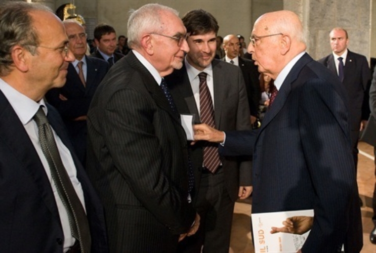 Il Presidente Giorgio Napolitano durante l'incontro sul tema "Cinque anni con il Sud", organizzato dalla Fondazione Con il Sud