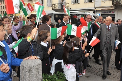 Il Presidente Giorgio Napolitano accolto da una scolaresca di Biella