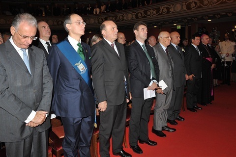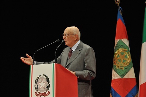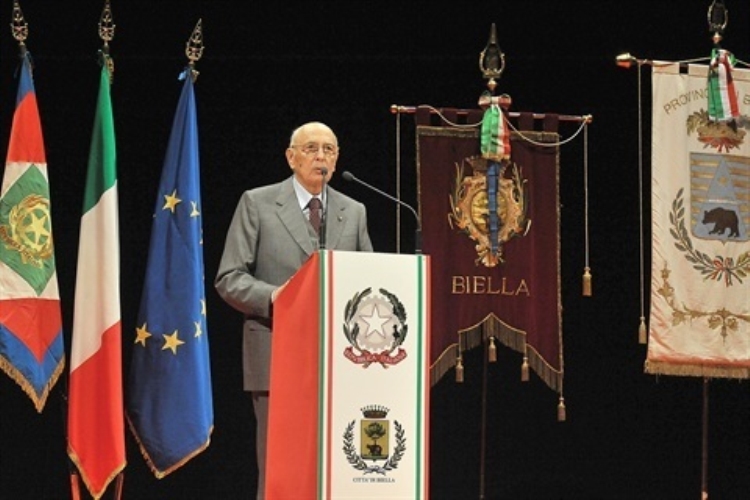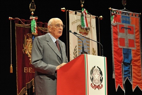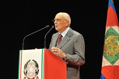 Il Presidente Giorgio Napolitano nel corso del suo intervento al Teatro Sociale