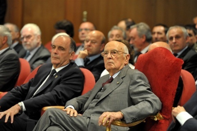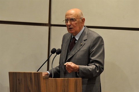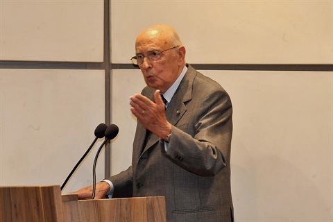 Il Presidente Giorgio Napolitano nel corso dell'incontro con le autorità civili, militari e religiose della Regione Valle d'Aosta