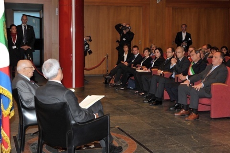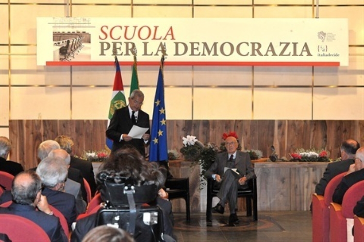 Il Presidente Giorgio Napolitano nel corso dell'incontro "Scuola per la Democrazia"