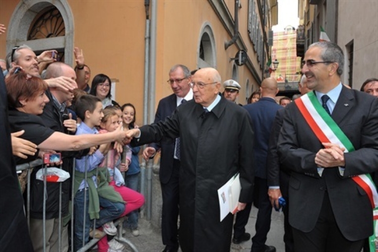 Il Presidente Giorgio Napolitano nel corso del trasferimento al Teatro Toselli