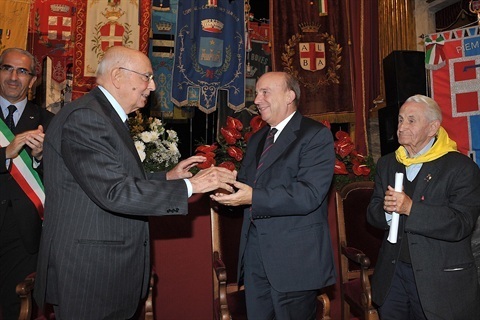 Il Presidente Giorgio Napolitano nel corso dell'incontro sul tema "Cuneo e l'Unità d'Italia" al Teatro Toselli
