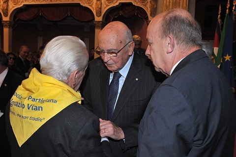 Il Presidente Giorgio Napolitano al suo arrivo al Teatro Toselli in occasione dell'incontro "Cuneo e l'Unità d'Italia"