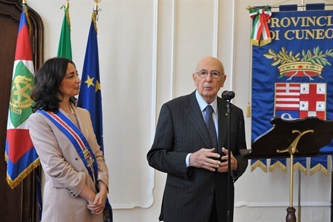 Il Presidente della Repubblica Giorgio Napolitano con Gianna Gancia, Presidente della Provincia di Cuneo