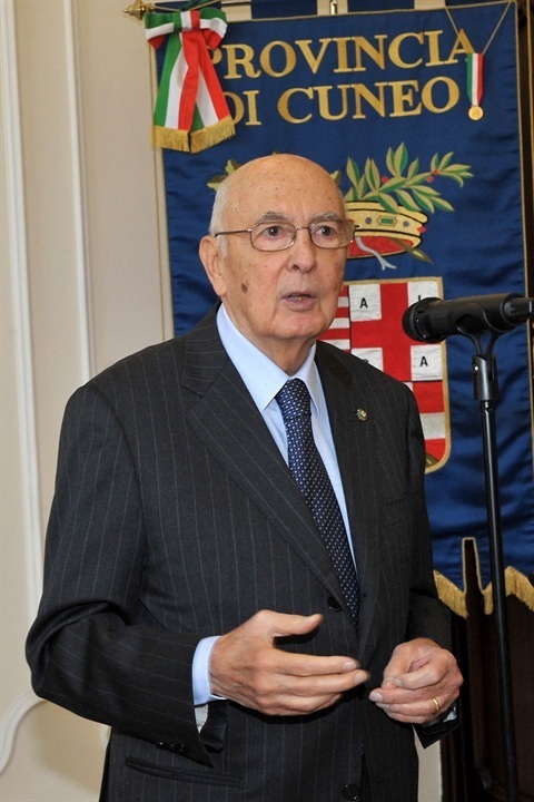 ll Presidente della Repubblica Giorgio Napolitano durante il suo intervento al Palazzo della Provincia di Cuneo