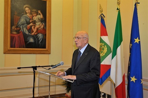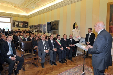 Il Presidente Giorgio Napolitano durante la cerimonia commemorativa nel 50° anniversario della morte di Luigi Einaudi