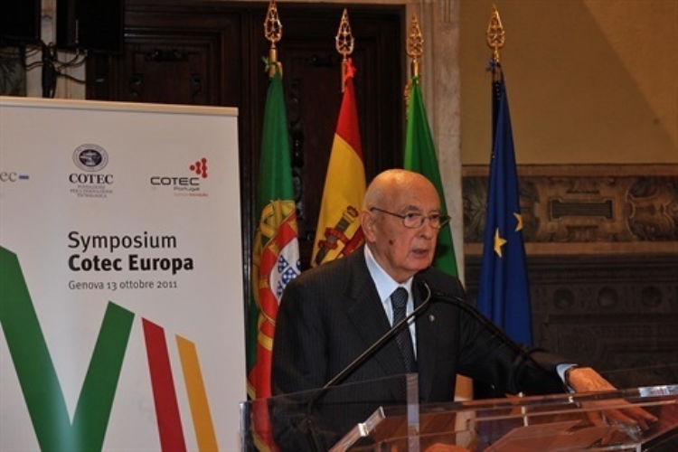 Il Presidente Giorgio Napolitano durante il suo intervento, al Palazzo Grimaldi della Meridiana di Genova, in occasione del VII Symposium Cotec Europa