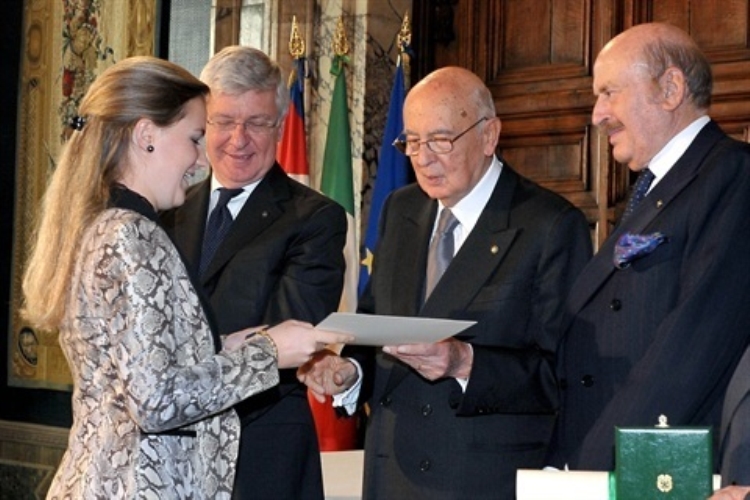 Il Presidente della Repubblica Giorgio Napolitano nel corso della consegna di medaglie ai nuovi Alfieri del Lavoro
