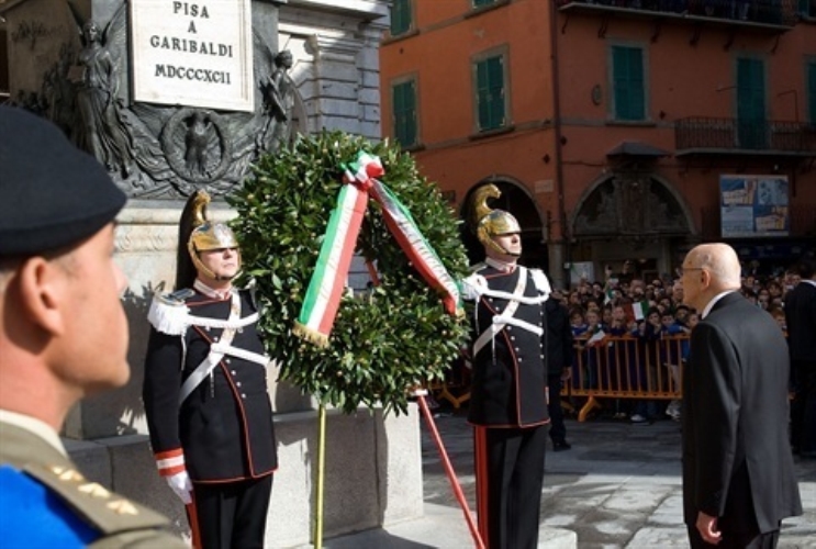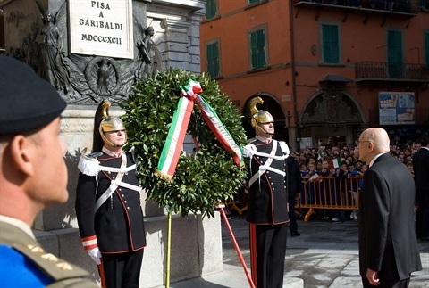 Il Presidente Giorgio Napolitano nel corso della deposizione di una corona d'alloro sul monumento di Giuseppe Garibaldi