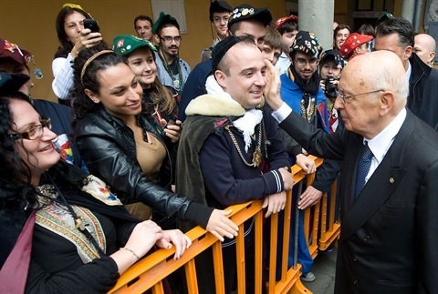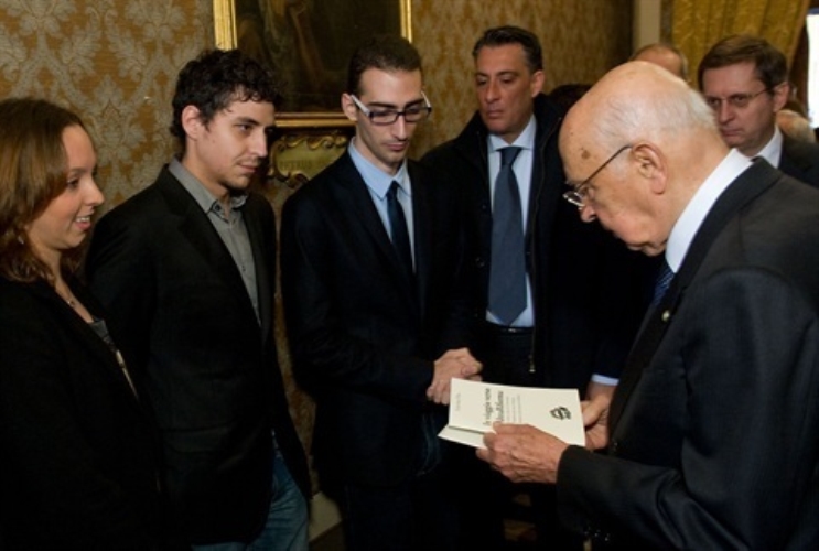 Il Presidente Giorgio Napolitano con alcuni studenti universitari