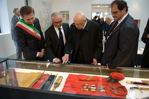 Il Presidente Giorgio Napolitano con il Sindaco di Pisa Marco Filippeschi e Paolo Peluffo visita la restaurata Domus Mazziniana
