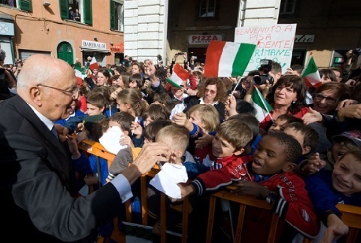 Il Presidente Giorgio Napolitano saluta alcuni studenti dell'Università degli Studi di Pisa