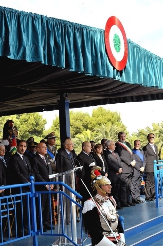 Il Presidente Giorgio Napolitano passa in rassegna un Reparto schierato con Bandiera e Banda al Sacrario dei Caduti d'Oltremare