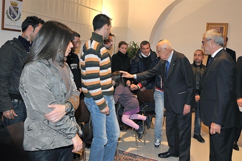 Il Presidente Giorgio Napolitano con i familiari delle vittime del crollo della palazzina di Barletta
