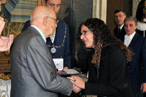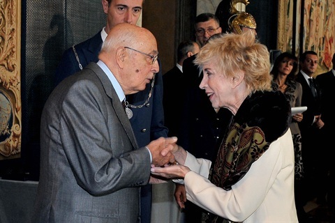 Il Presidente Giorgio Napolitano con Melania Gaia Mazzucco in occasione della Giornata dello Spettacolo