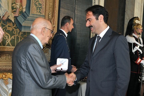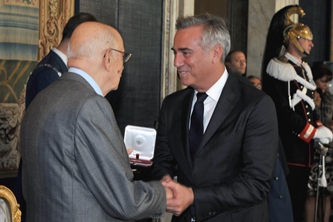 Il Presidente Giorgio Napolitano con Pietro Valsecchi in occasione della Giornata dello Spettacolo