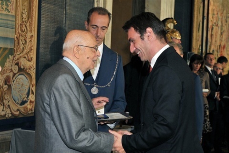 Il Presidente Giorgio Napolitano con Massimo Ghini in occasione della Giornata dello Spettacolo