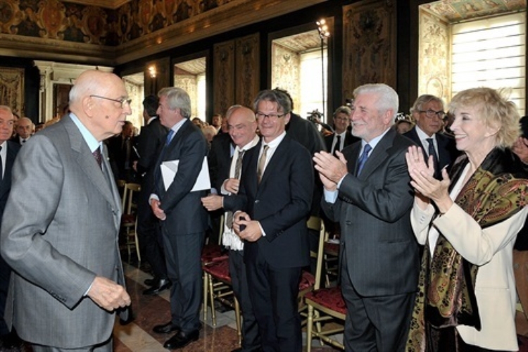 Il Presidente Giorgio Napolitano con il Maestro Arnaldo Pomodoro, in occasione della Giornata dello Spettacolo