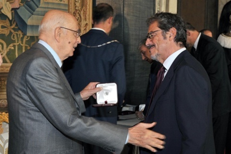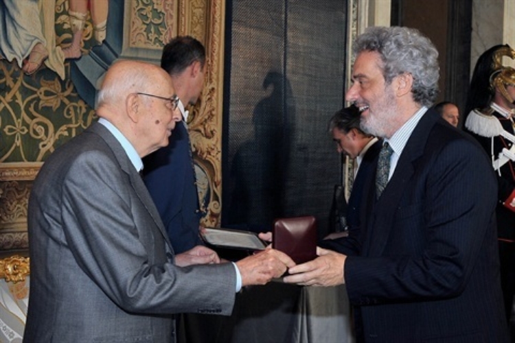 Il Presidente Giorgio Napolitano con Nicola Piovani in occasione della Giornata dello Spettacolo,