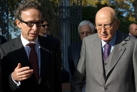Il Presidente Giorgio Napolitano accolto dall'Ambasciatore della Repubblica di Finlandia Petri Tuomi-Nikula, in occasione del convegno "Il Risorgimento nella formazione degli Stati nazionali - Italia e Finlandia"