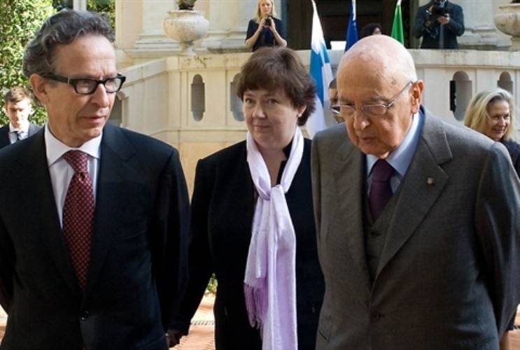 Il Presidente Giorgio Napolitano con l'Amb. della Repubblica di Finlandia Petri Tuomi-Nikula e la Direttrice dell'Institutum Romanum Finlandiae, Katariina Mustakallio, in occasione del convegno "Il Risorgimento nella formazione degli Stati nazionale - Italia e Finlandia", nel 150° anniversario dell'Unità d'Italia