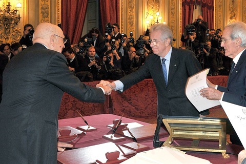 ll Presidente della Repubblica Giorgio Napolitano con il Prof. Mario Monti in occasione della cerimonia di Giuramento del nuovo Governo
