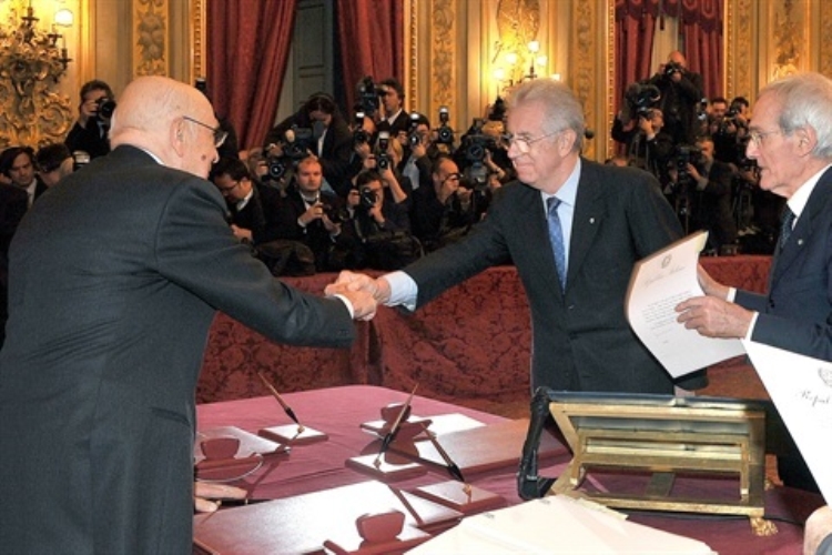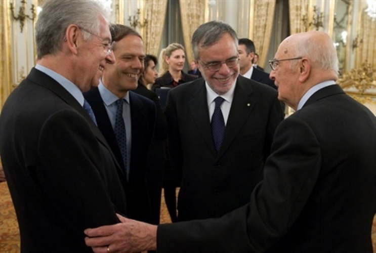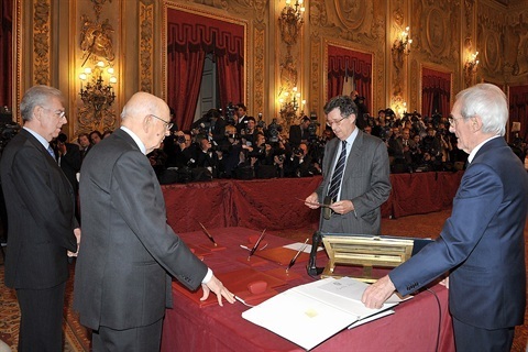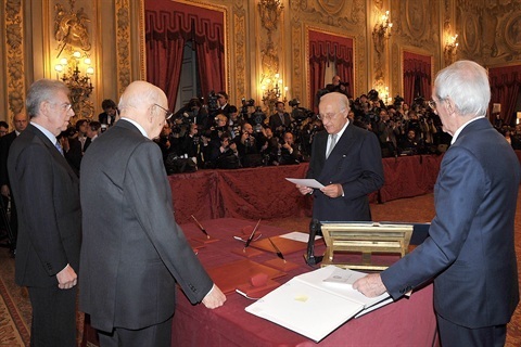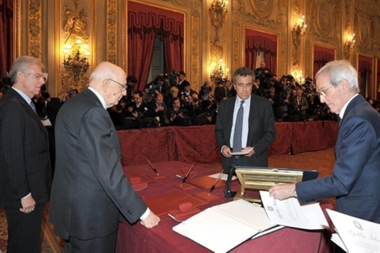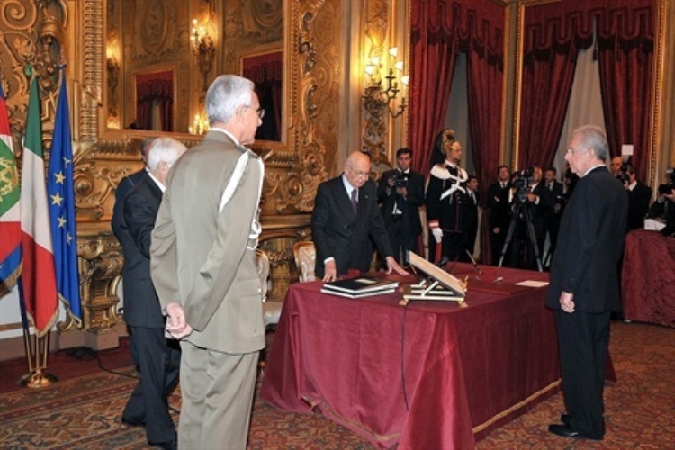 Il Presidente della Repubblica Giorgio Napolitano nel corso del Giuramento di Mario Monti, Presidente del Consiglio dei Ministri