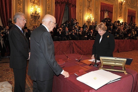 ll Presidente Giorgio Napolitano con Elsa Fornero, Ministro del Lavoro e politiche sociali nel corso del Giuramento del nuovo Governo