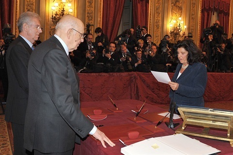 ll Presidente Giorgio Napolitano con Paola Severino, Ministro della Giustizia nel corso del Giuramento del nuovo Governo
